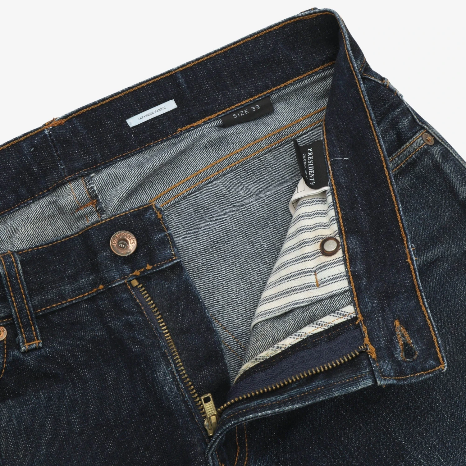 Icarus Jeans made from Japanese denim by Presidents. Great worn condition with minimal signs of wear, fading on the knees.