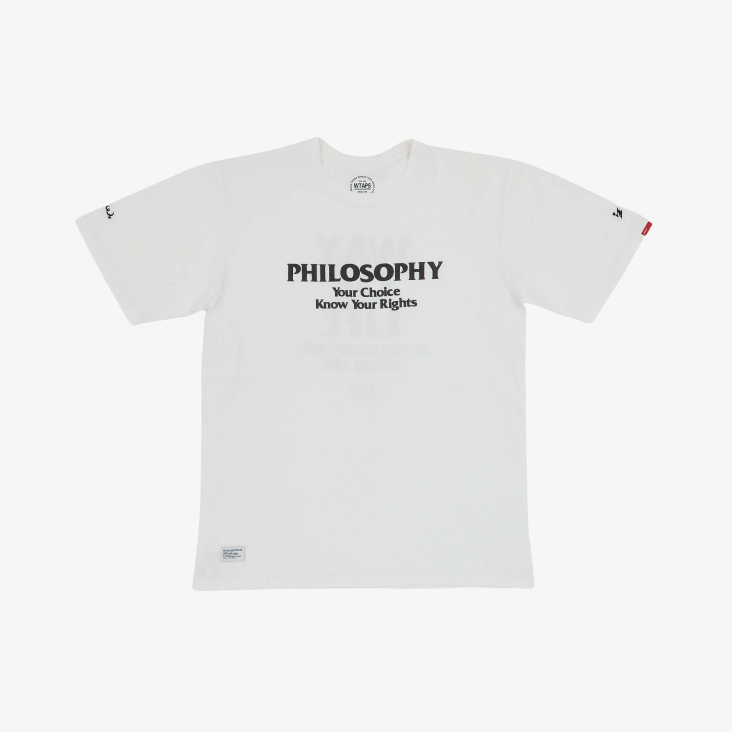 Made in Japan, this Wtaps T-shirt features graphics associated with the brand’s Philosophy zine, which was published between 2005 and 2007.Â