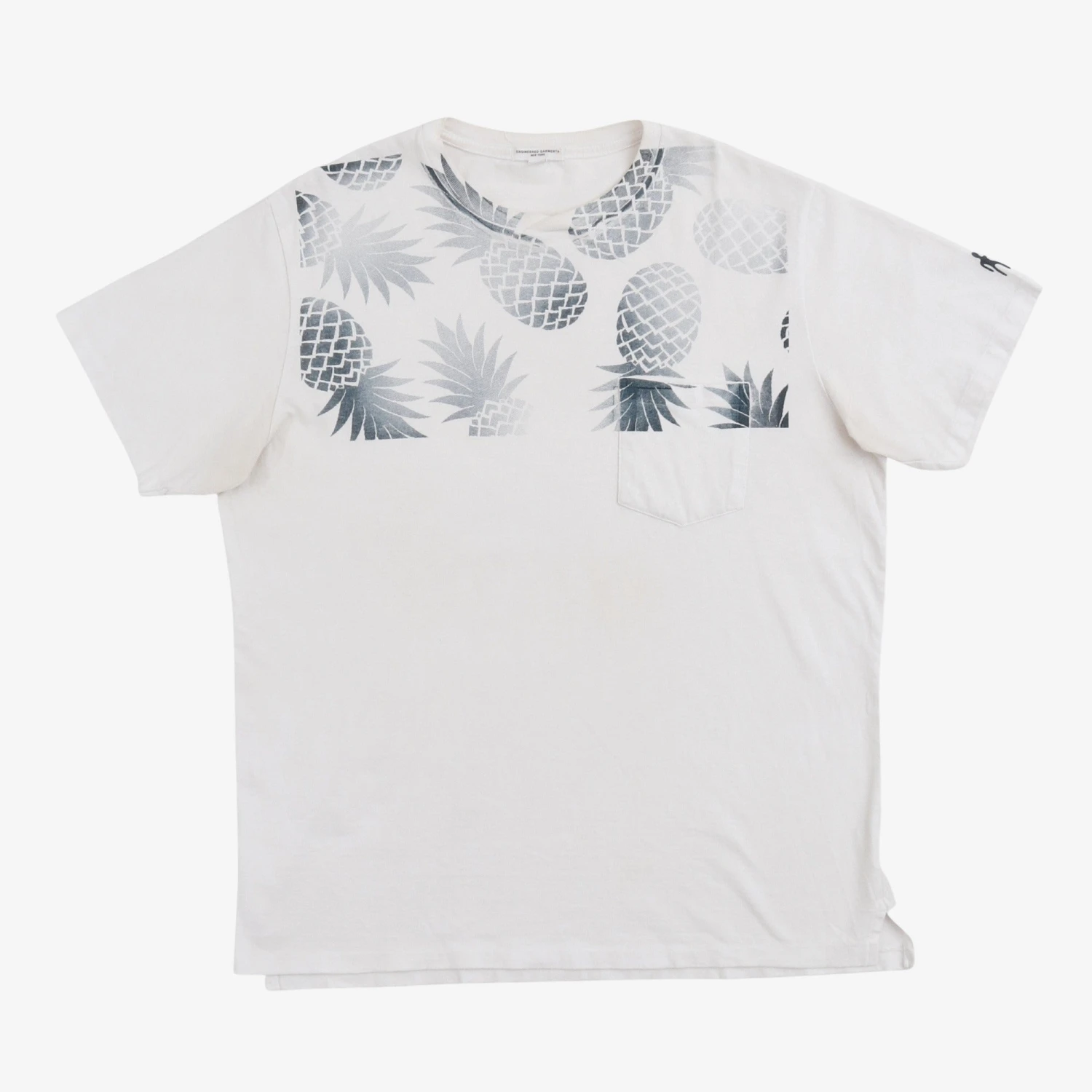 Pineapple Graphic Tee by Engineered Garments. Small marks on the front and small stain underarm as shown in images.