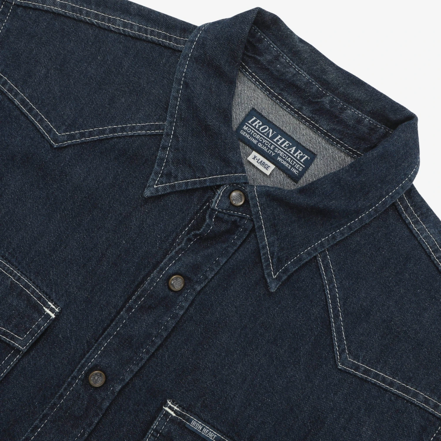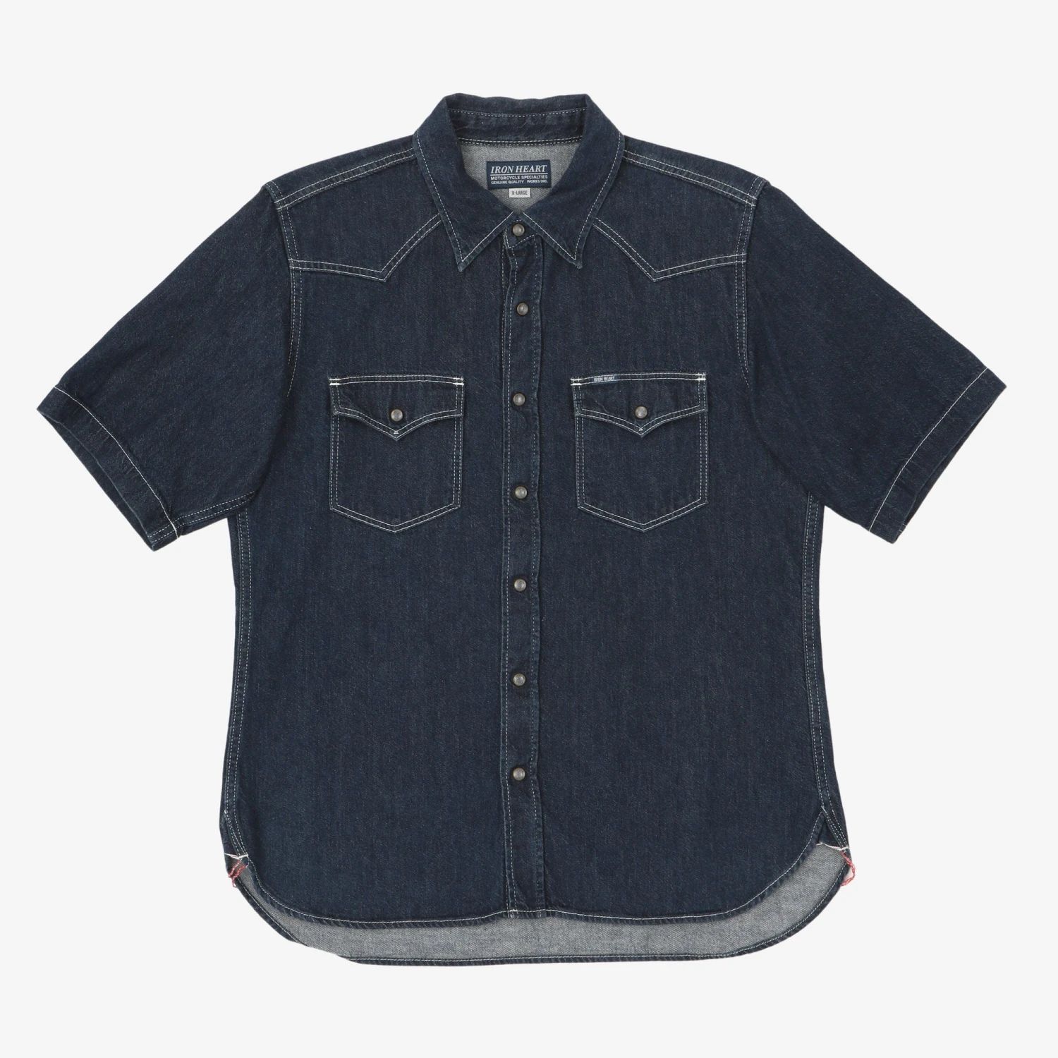 Short Sleeve Denim Work Shirt from Iron Heart. Minimal signs of wear throughout.