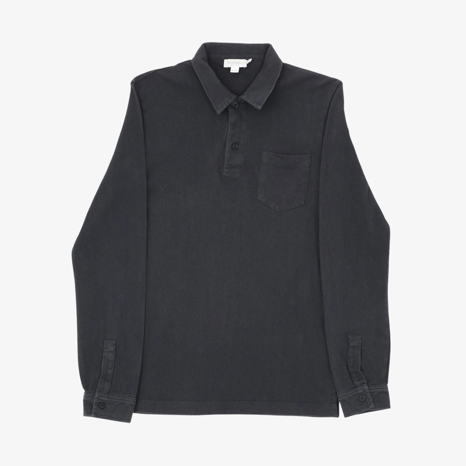 Long Sleeve Polo Shirt from Sunspel made from a textured fabric with 2 button placket.